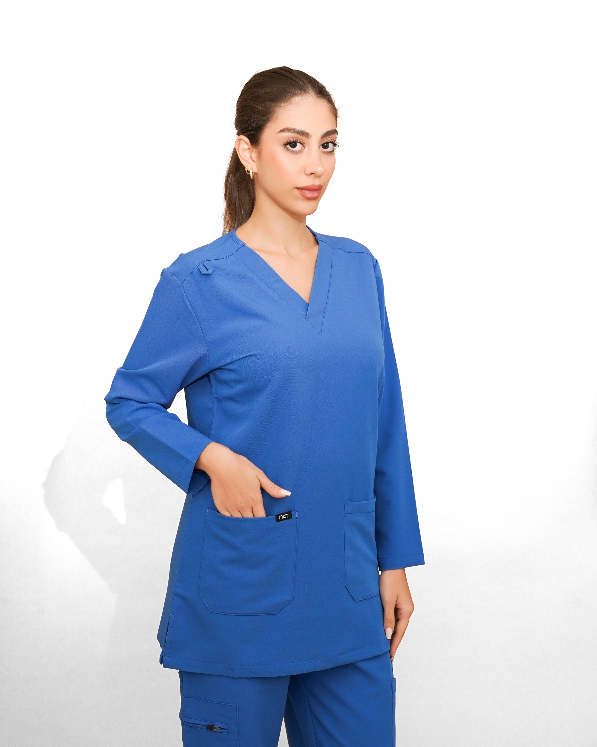 The full Signature Women’s Scrub Set features a long-sleeve top and matching pants, designed for comfort, mobility, and durability. Made from a premium stretch blend (72% polyester / 21% rayon / 7% spandex), the set is breathable, wrinkle-resistant, and holds its shape through frequent washing.